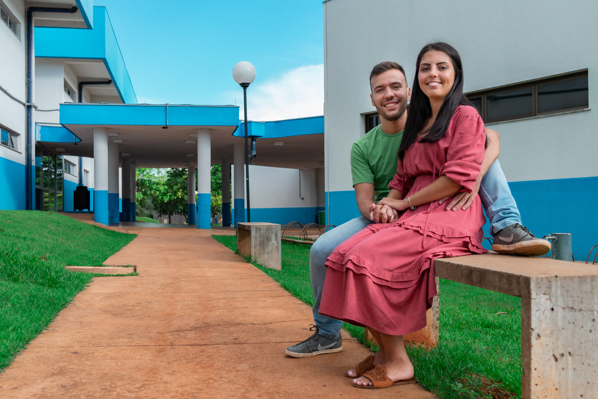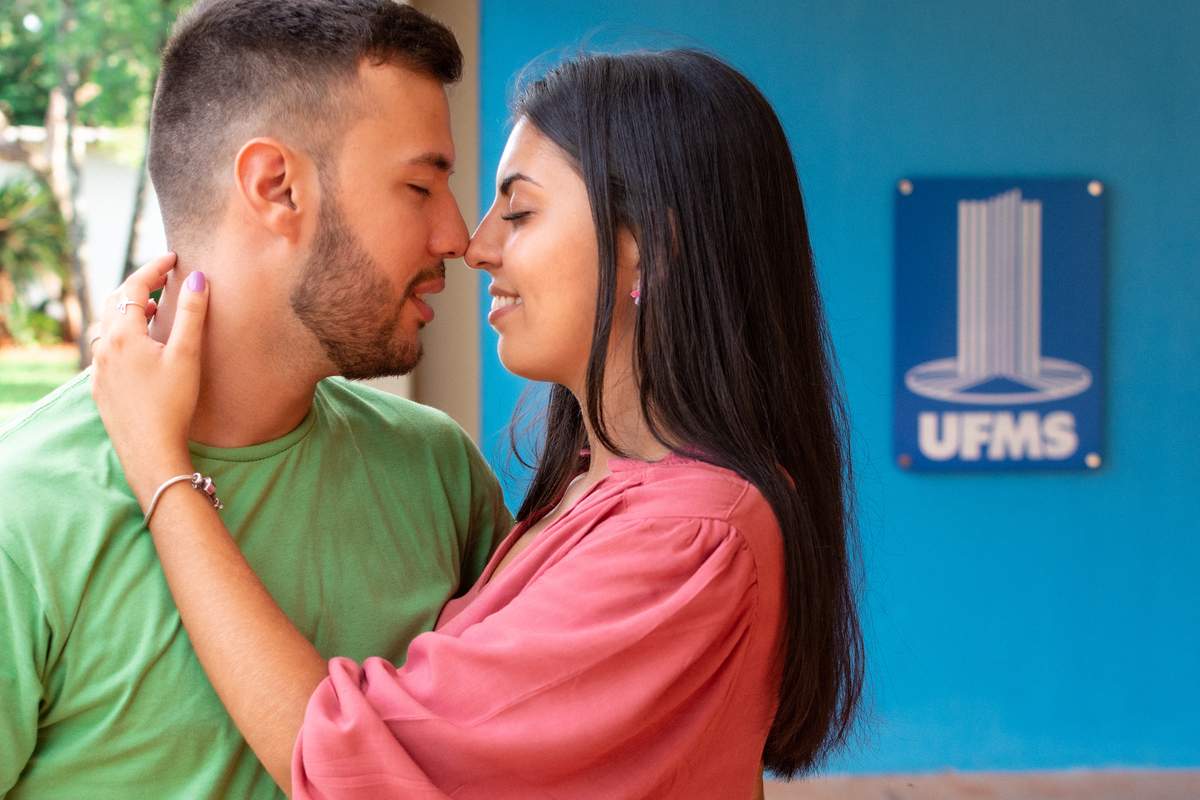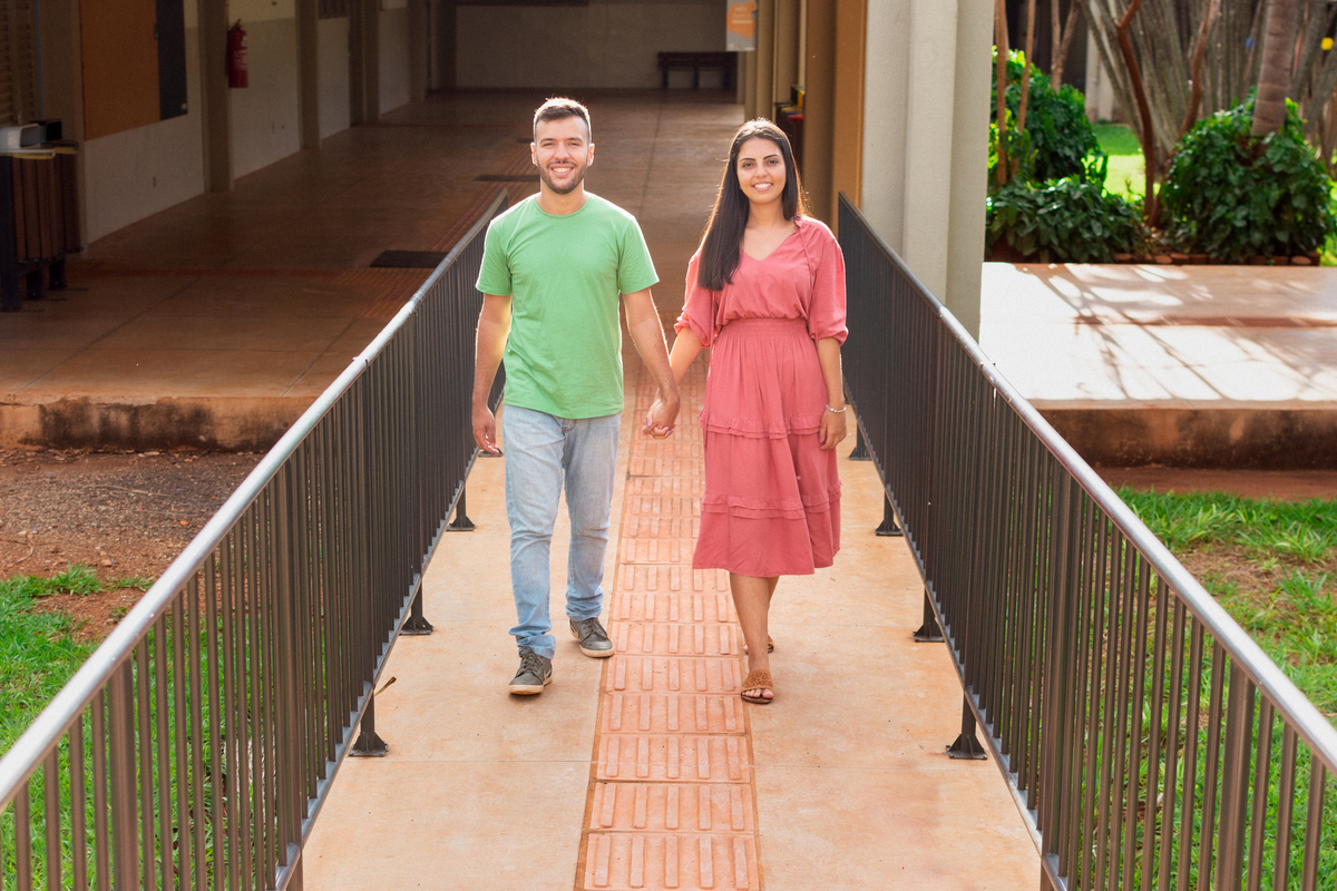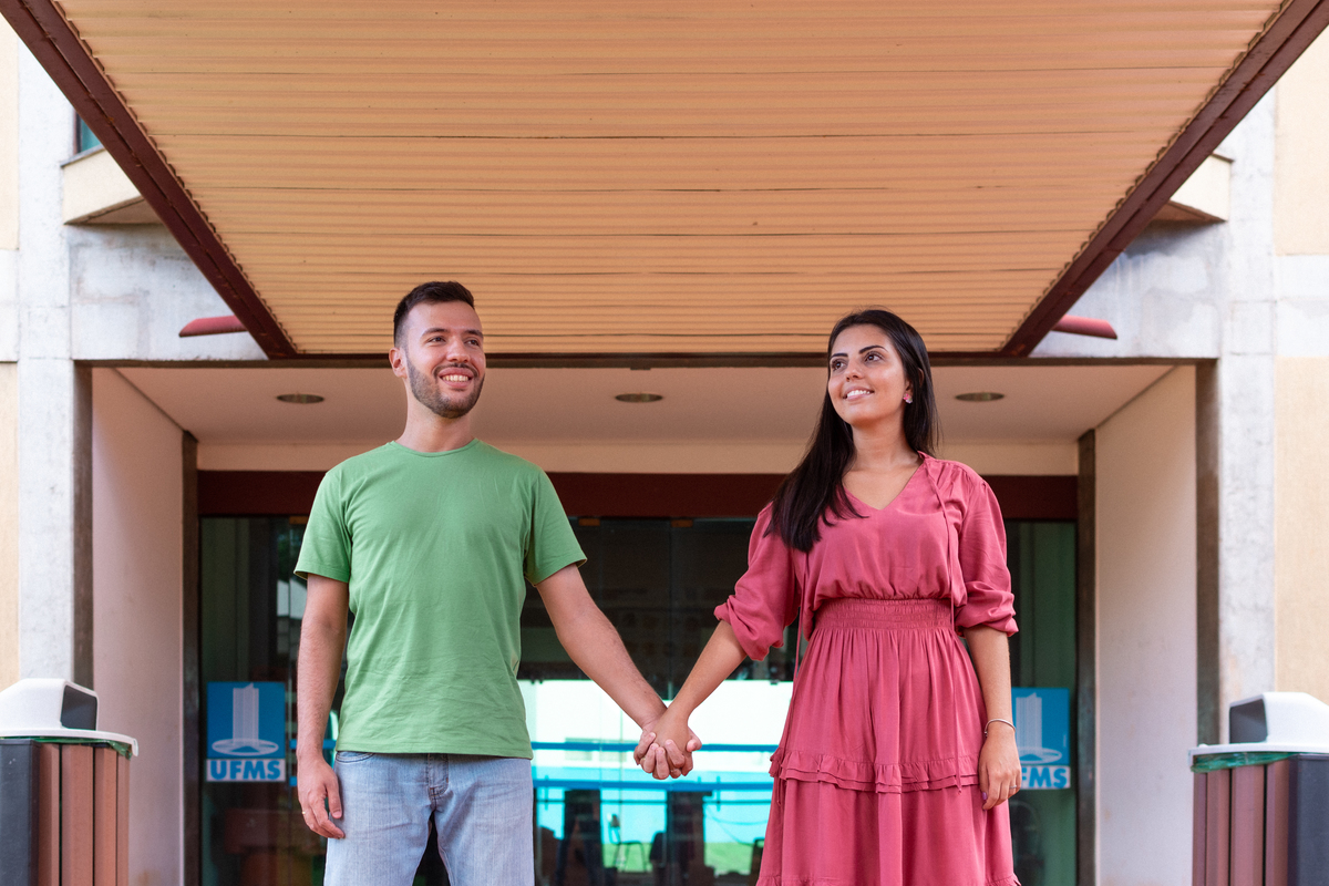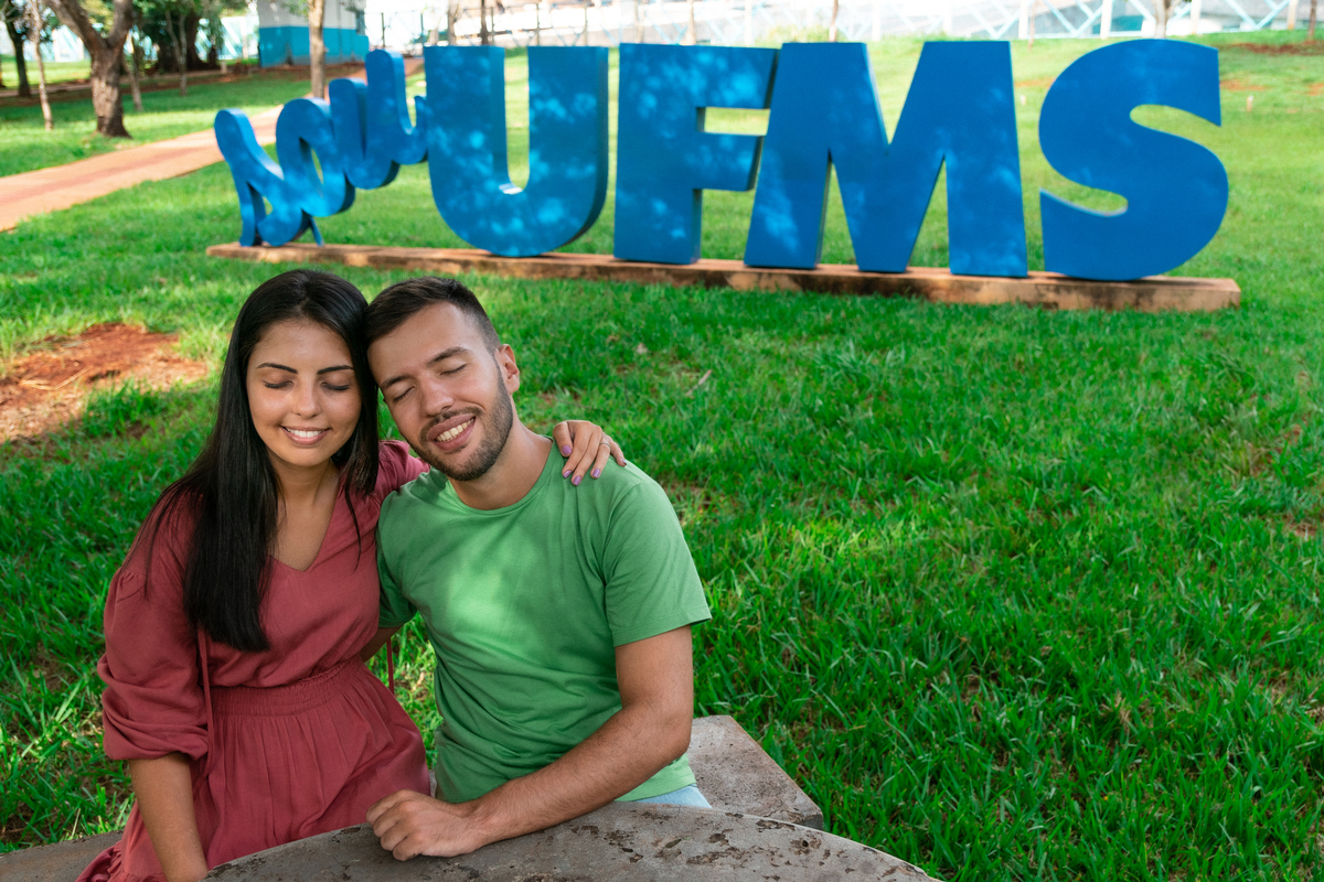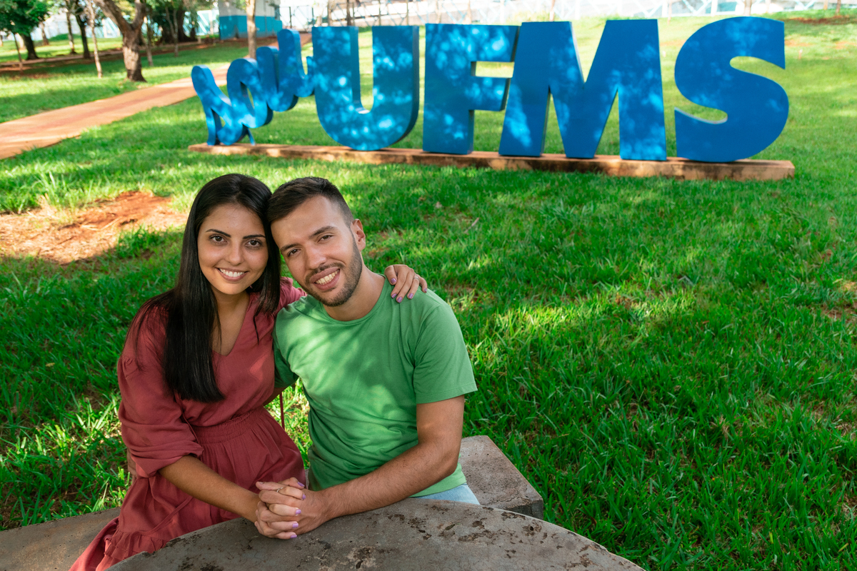Ele cursava Engenharia Civil e ela Engenharia de Produção. Por conta de uma monitoria de cálculo, que um amigo dele dava, os dois se conheceram!A universidade foi o cenário de paquera, encontros, primeiro beijo e namoro. Mateus e Suellen começaram um relacionamento que nesse ano chegará à marca de 7 anos! Quando foi pra escolher o local do ensaio fotográfico, outro lugar não seria tão significativo quanto onde tudo começou na vida do casal: a UFMS!