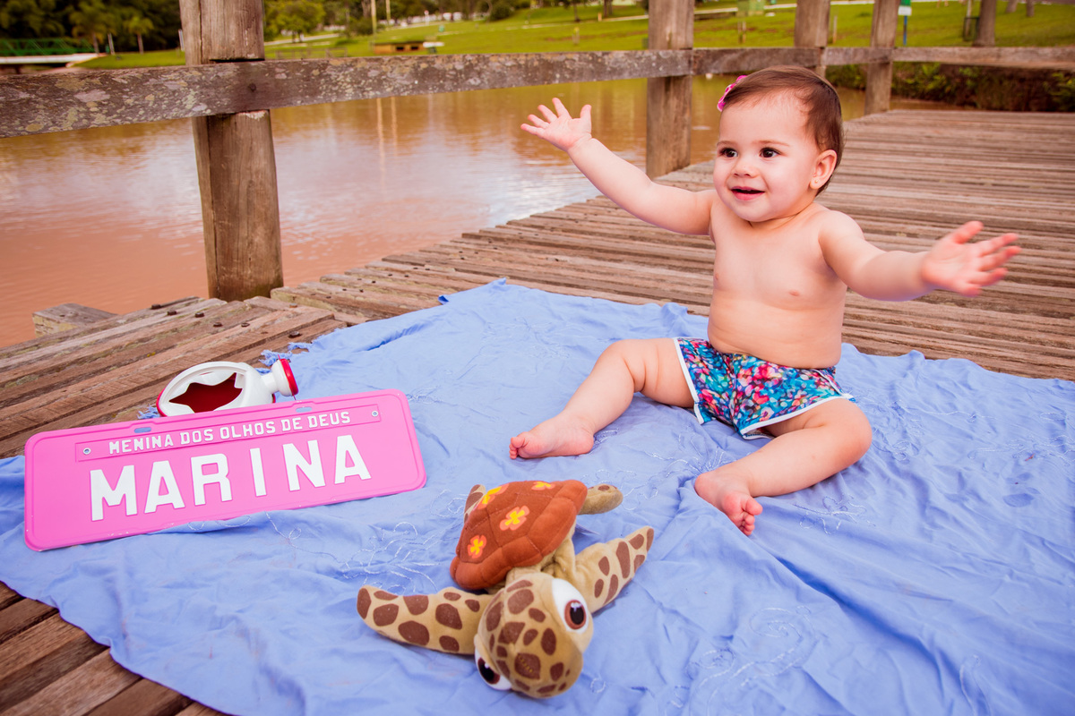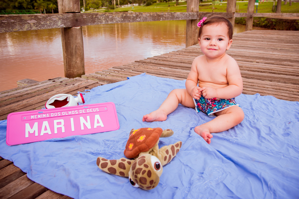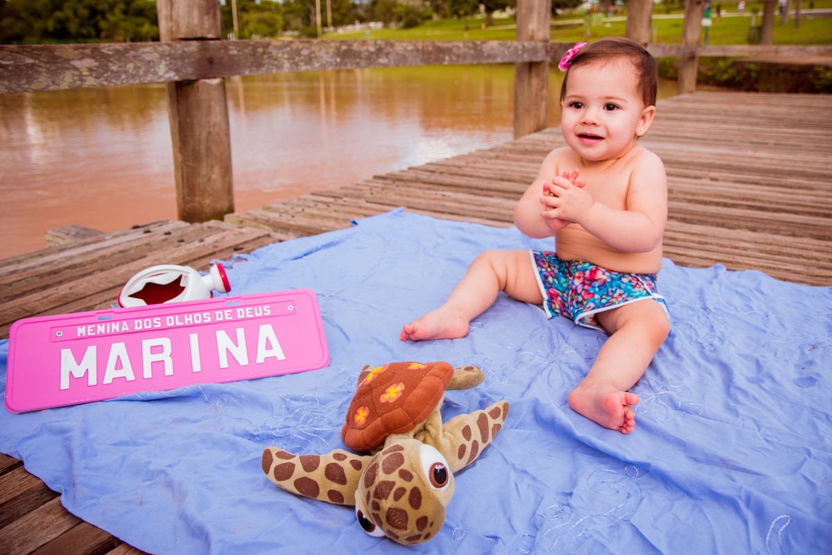Ensaio feito para a pequena Marina que iria fazer 1 ano de idade. O tema da festa era Fundo do Mar e resolvemos fazer um ensaio para dar mais força ao tema e ajudar na decoração com as próprias fotos da pequena Marina!